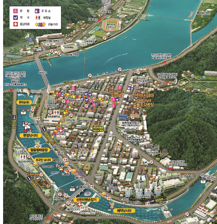 즐길거리가 가득한 곳입니다. 산천어 축제와 자매 결연을 맺은 중국 하얼빈 빙등제의 중국 조각기술자 30명이
