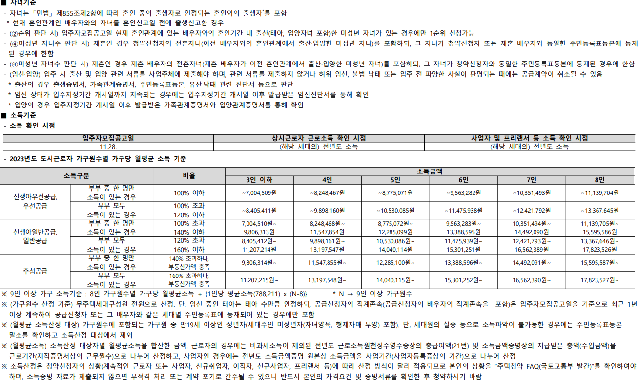 4) 입주자모집공고일 현재 2세 미만 자녀가 있을 것