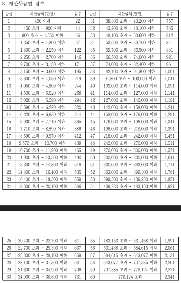 세대원이 소유하는 부동산의 가액의 합계가 국민건강보험법 시행령 제3호에 따른 재산 등급 중