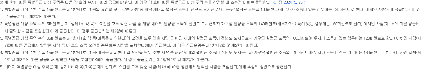 공급 시에는 공급요건에 나와 있는 정하는 바에 따라 해당 요건 충족 시 공급 순위를 따르거나