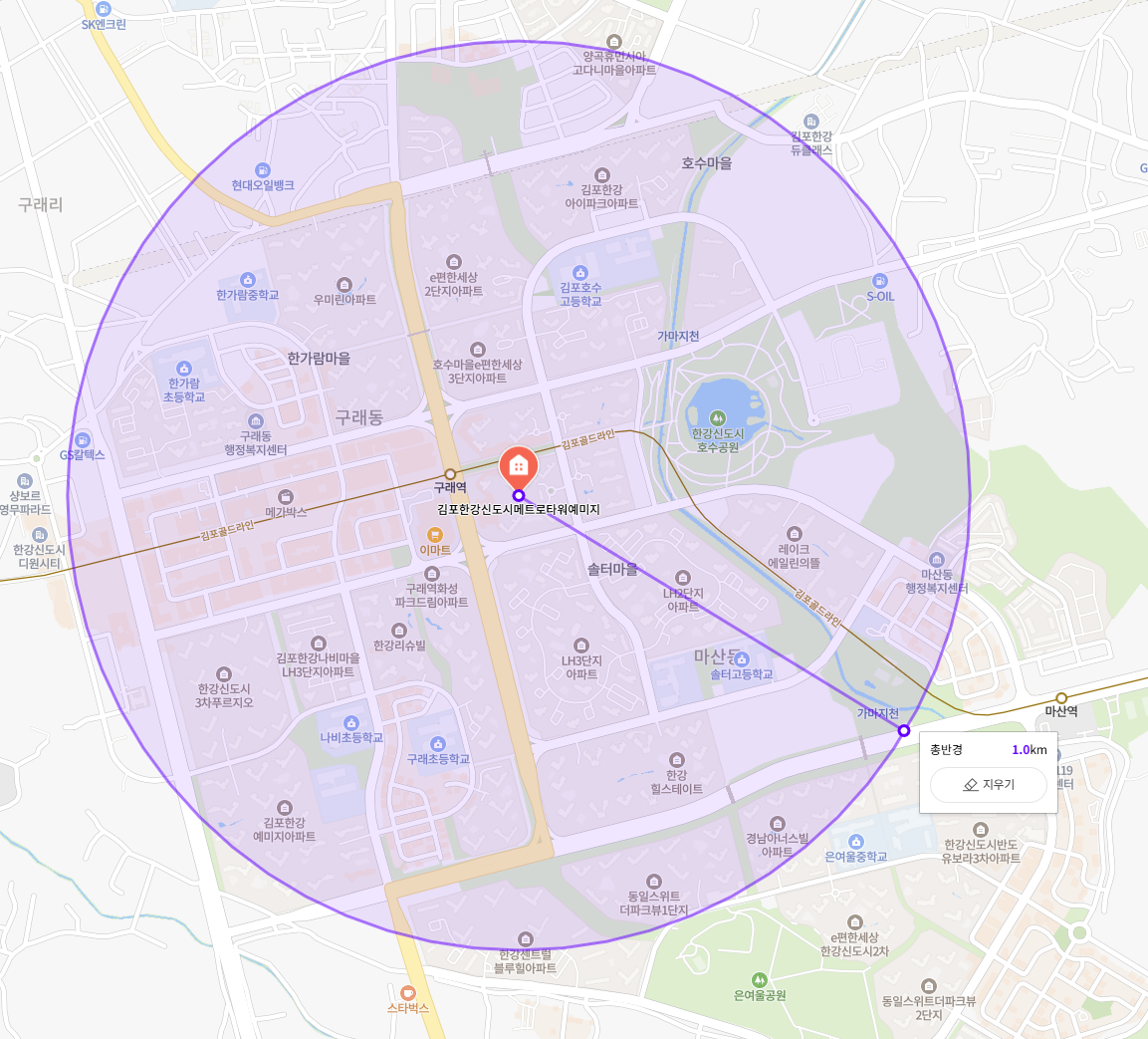※ 라베니체, 롯데마트 : 직선거리 4km 대