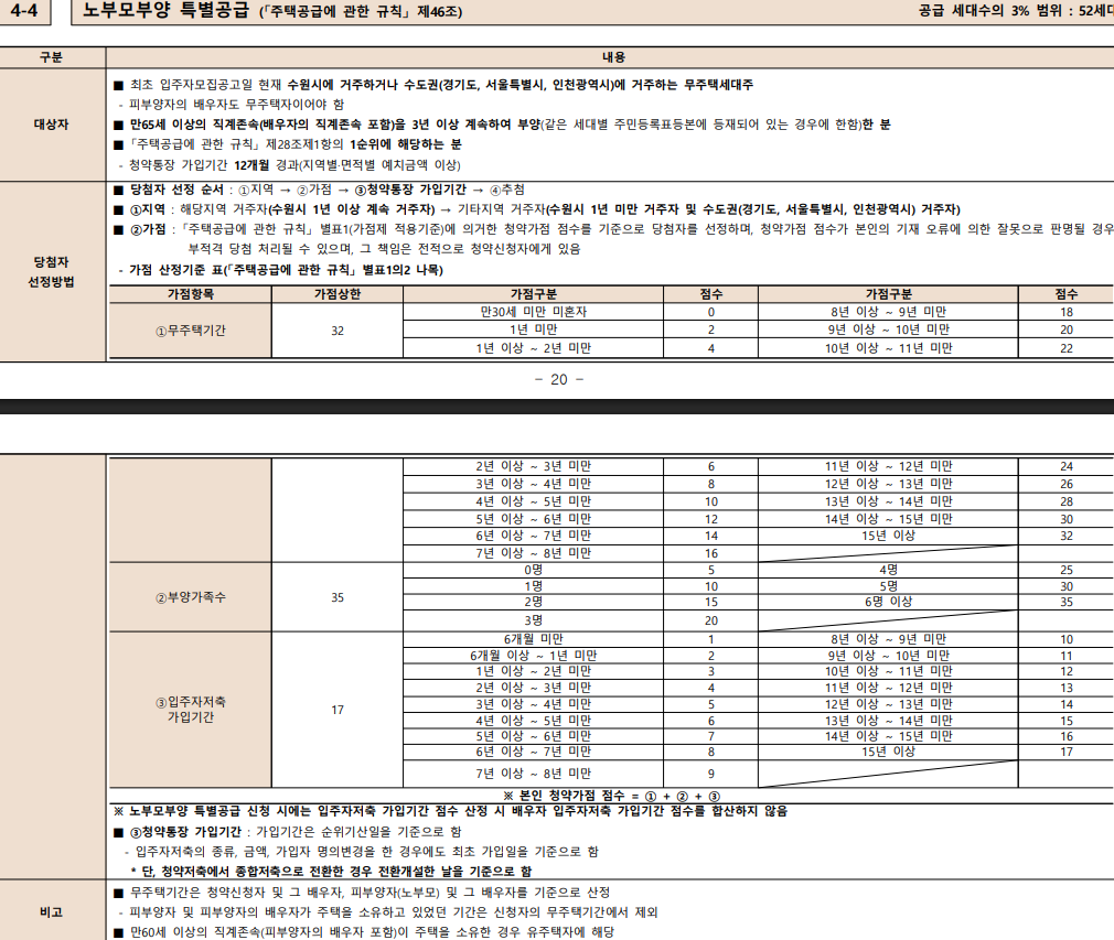 만 65세 이상의 직계존속(배우자 직계존속 포함) 3년 이상 부양하고 있는 무주택 세대주.