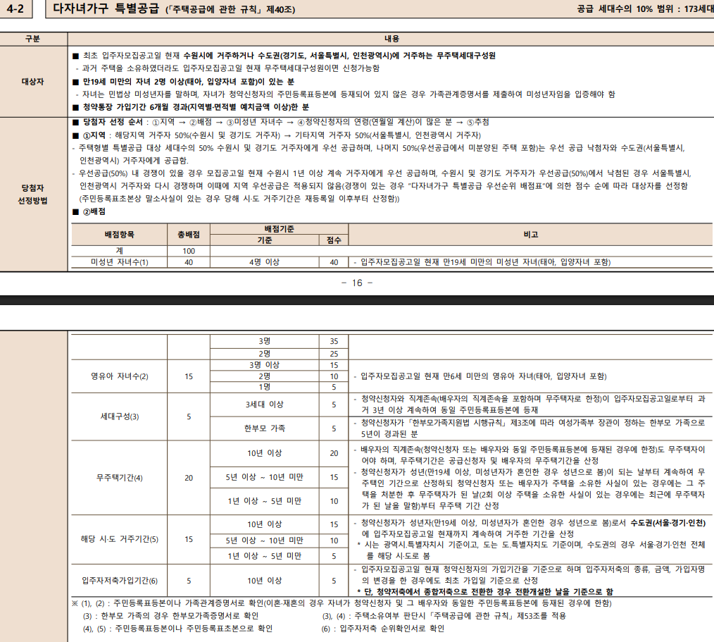 다자녀가구 특별공급 청약제도, 청약조건 정리 - 민영주택
