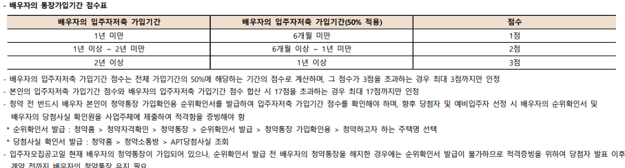 배우자의 통장가입기간 점수표는 위 이미지를 참고하시기 바랍니다.