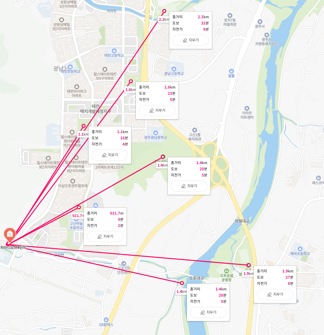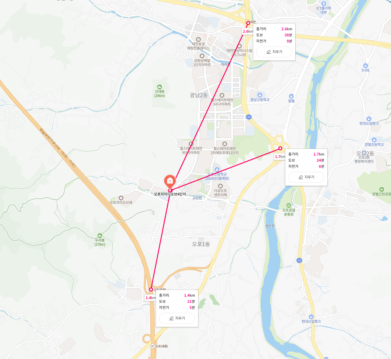 반경 2km 내 고산동 마을회관 및 오포도서관 존재