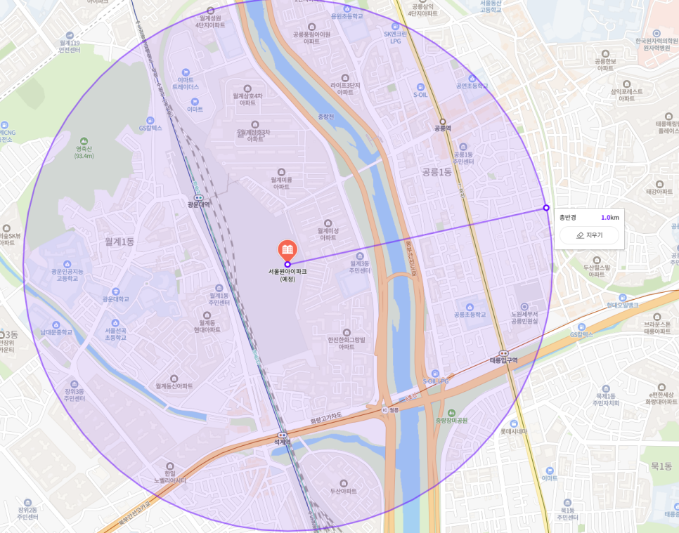 서울지하철 7호선 공릉역 : 직선거리 830m