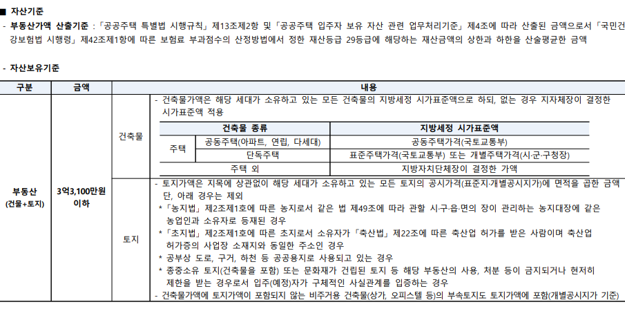 자산보유기준, 자녀기준은 위 이미지를 참고하시면 되겠습니다.