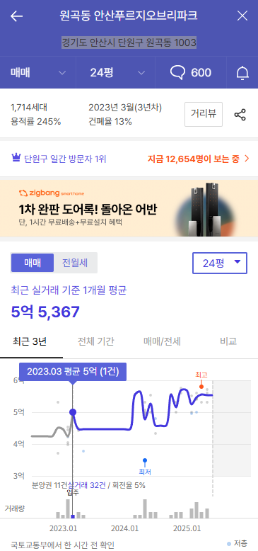 24평형 최근 실거래 기준 1개월 평균 : 5.53억