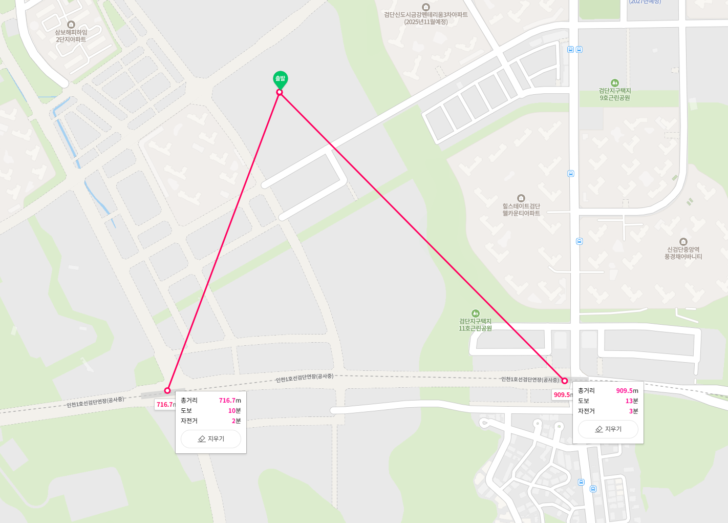 검단호수공원 (예정) : 직선거리 996m