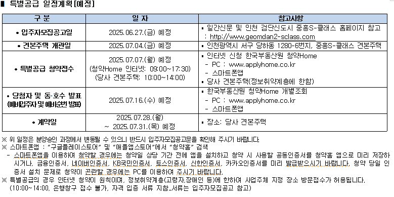 특별공급 : 7월 7일(월) 예정